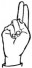 На ћирилици написано РАДОВАН РЕСКОВИЋ састоји се из 15 слова [?]. Исписано ћириличном једноручном азбуком за глувонеме: